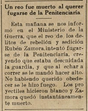 - Mañana a las 8 a.m. en el templo de Santa Clara, se celebrarán solemnes actos piadosos en sufragio del alma de la estimable señora Dolores Aparicio v. de Chinchilla, de cuya defunción dimos cuenta en su oportunidad.