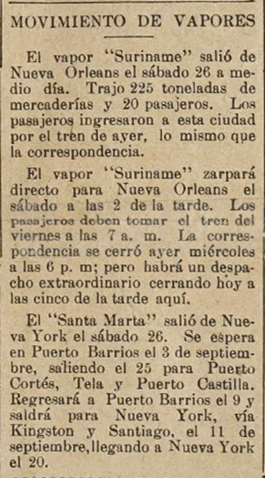 - A bordo del “Suriname”, que fondeó antes de ayer en Puerto Barrios, llegó a Guatemala, procedente de los Estados Unidos, el señor Luis Mendizábal.