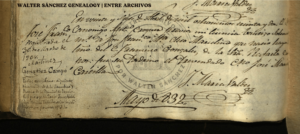 Fuente: Libro de bautismos #1 de la Parroquia de Santo Domingo de Guzmán, folio 38 vuelto, registro #5. Archivo Histórico Arquidiocesano de Guatemala